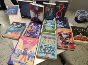 Einfach mal ungestört in Büchern stöbern, und das mitten im Schulalltag? Ja, dank eines Büchertisches war es von Montag bis Donnerstag für Lernende aller Stufen im Literaturraum möglich, sich zu neuen Leseabenteuern inspirieren zu lassen. Einige suchten den von engagierten Eltern beaufsichtigten Raum selbstständig in kleinen Gruppen während der Pausen auf, andere freuten sich darüber, dass ihre Lehrkraft die Buchauswahl mit dem ganzen Klassenverband begutachtete und in diesem Zusammenhang auch noch einmal die Möglichkeit nutzte, den Kindern und Jugendlichen etwas vorzulesen. Ihre besondere Veranstaltung der lit.SILVER erlebten die 7ten Klassen am heutigen Tag: Dennis Witton von der Buchhandlung WORTREICH in Horrem, der auch den Büchertisch eingerichtet hatte, stellte ihnen eine Vielzahl aktueller Bücher vor. Gebannt folgten sie ihm in Fantasy- und Science-Fiction-Welten, in die er sie durch ausdrucksstark vorgelesene spannende, schaurige, aber auch lustige Romanauszüge mitnahm. Darüber hinaus präsentierte er ihnen aber auch Bücher, die sich mit ethischen Fragen befassen oder Probleme von Jugendlichen in den Fokus stellen. Die interessierten Fragen der Jugendlichen zeigten, dass er eine sehr ansprechende Auswahl getroffen hatte. Mit dieser Veranstaltung klingt unser Literaturfestival langsam aus. Es waren zwei intensive, inspirierende Wochen erlebter Literatur, die alte Leseleidenschaft erneuert und neue Perspektiven eröffnet haben. Astrid Tausch![]()